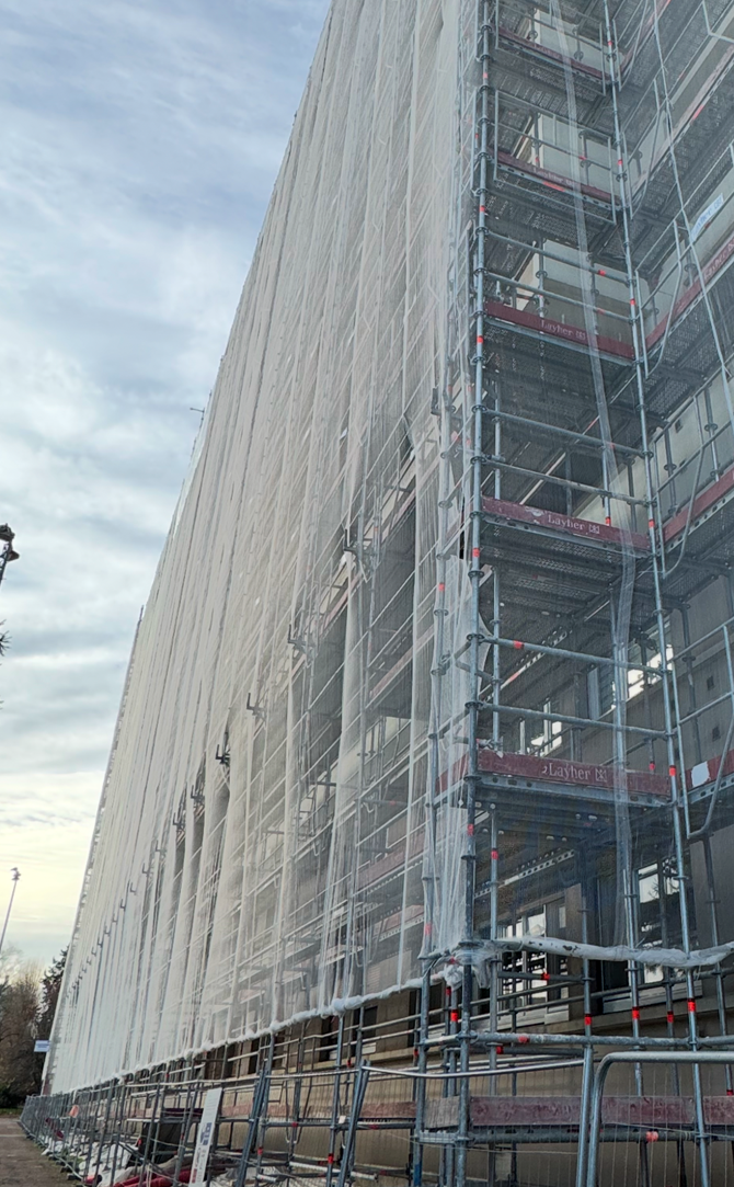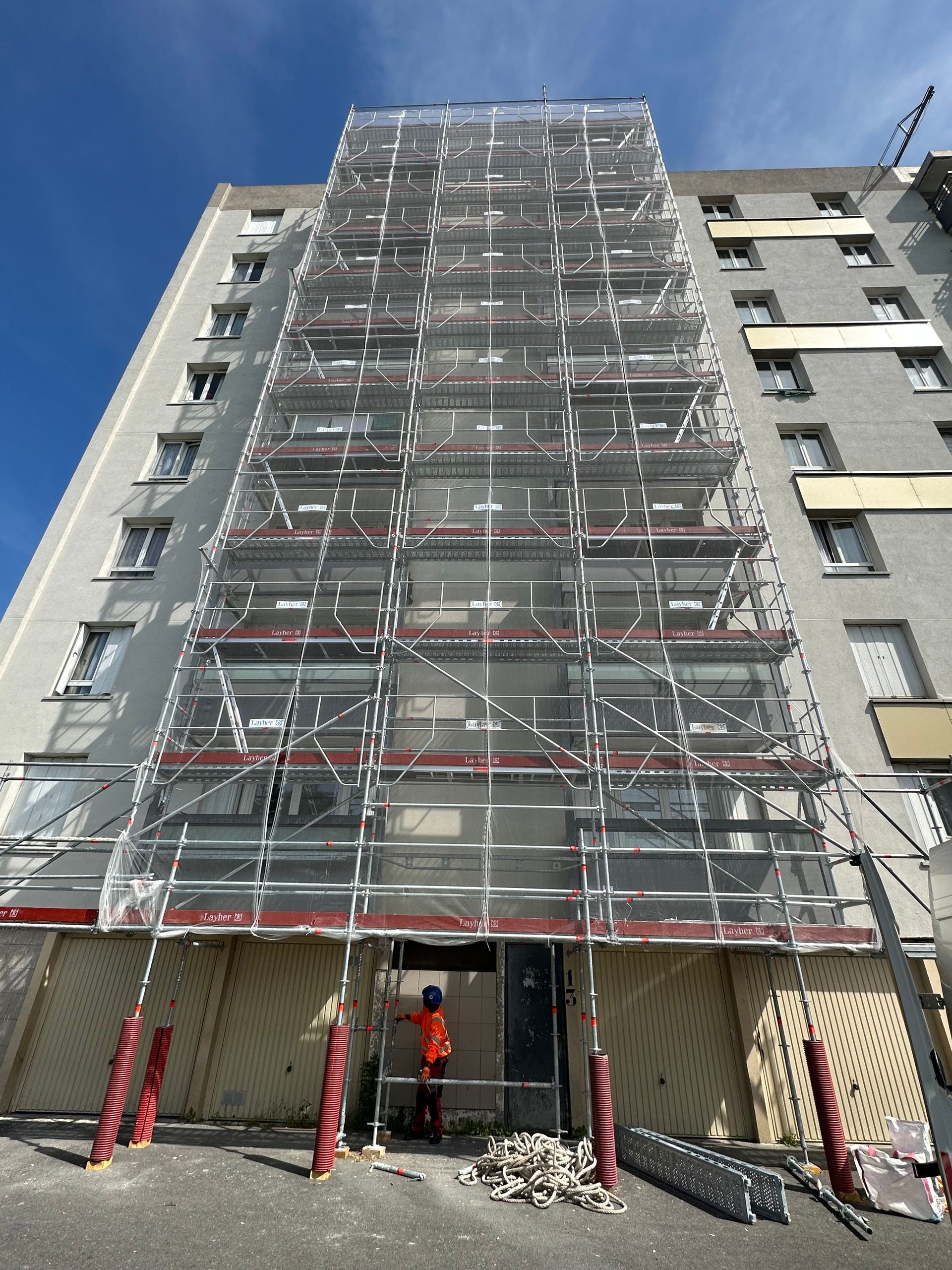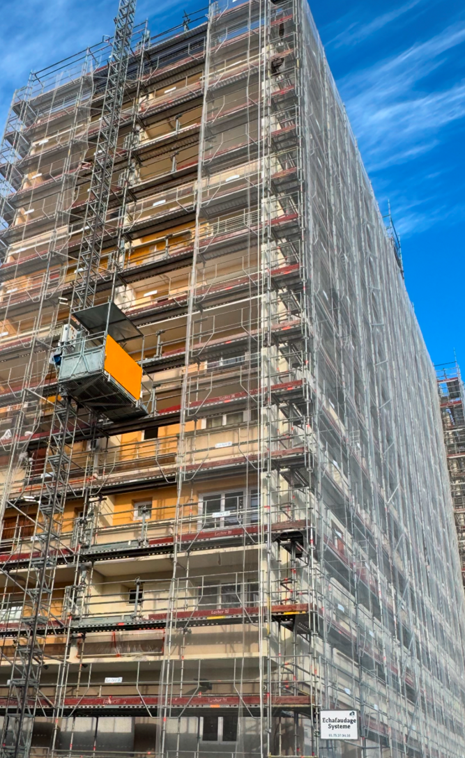 Avec 500 000 m² d'échafaudages de toutes sortes, nous pouvons accéder à près de 50 mètres de hauteur, ainsi qu'aux endroits difficiles d'accès.